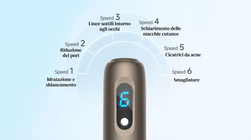 ✅ Ago regolabile: Questa penna microneedling funziona muovendosi automaticamente dentro e fuori sulla pelle. La lunghezza dell’ago è regolabile e dispone di 6 impostazioni di velocità di lavoro, che vanno da basse a forti, per adattarsi a tutti i tipi e condizioni della pelle.